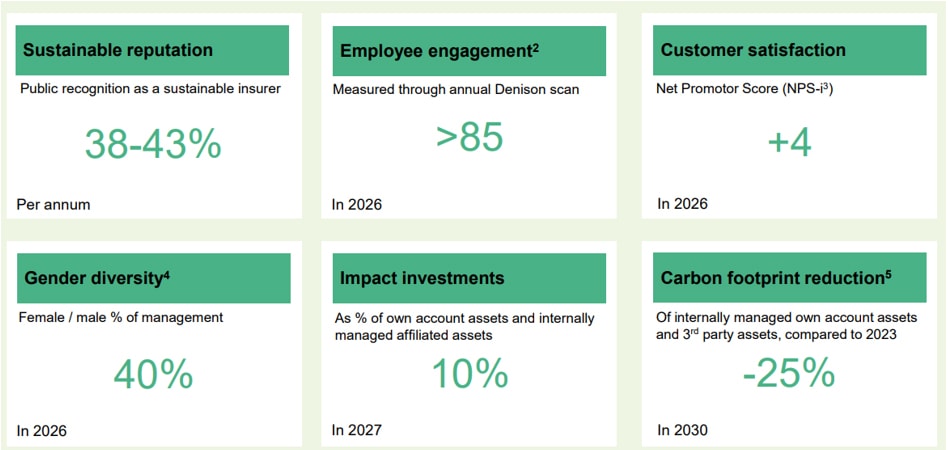 The core of the strategy is to create long-term value for all stakeholders: customers and advisors, employees, shareholders and society. a.s.r. is ambitious and aims to be the leading pension provider in the Netherlands, as well as a prominent mortgage lender, with strong positions in non -life insurance, disability insurance and asset management. In addition, a.s.r. intends to expand its role in the value chain through distribution and service companies. In the areas of individual life, funeral and health insurance, a.s.r. focuses on maintaining its current position. a.s.r. seeks to lead by example and demonstrate that sustainability is essential. For this reason, it aspires to be among the leading group of the most sustainable insurers in Europe.